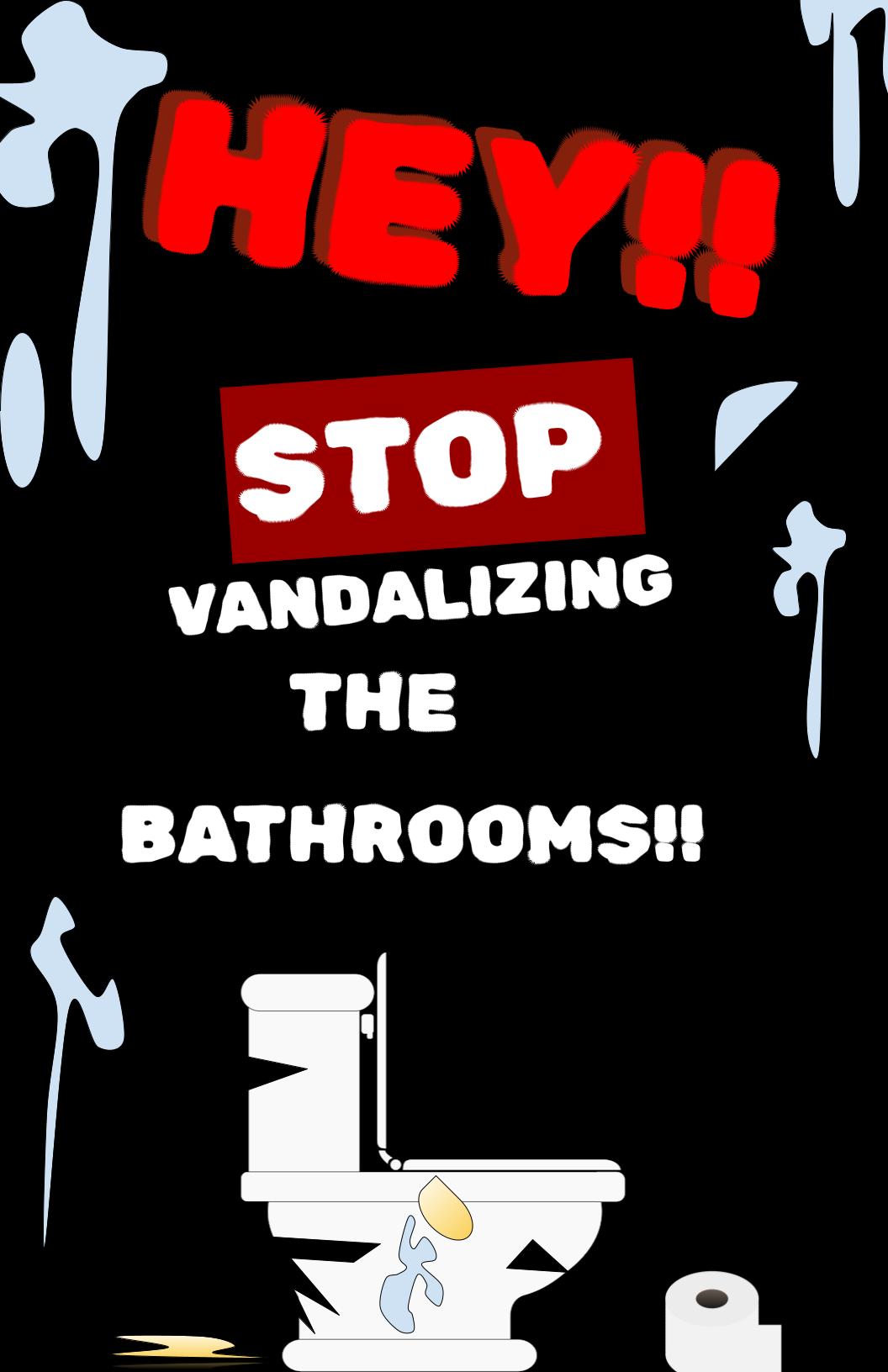 PROFILE/DESCRIPTIONThe problem I am trying to address is the bathrooms being vandalized in more ways than one. Usually there is pee on the floor, a ton of graffiti on the walls, food in the toilets and even breaking the doors off the bathrooms. There are individuals who do not care about other people and because of that, a lot of people feel disgusted when going to the bathroom, which causes people to not want to go to the bathrooms in certain areas. This poster symbolizes that problem, and hopefully will stop people from continuing to do it.