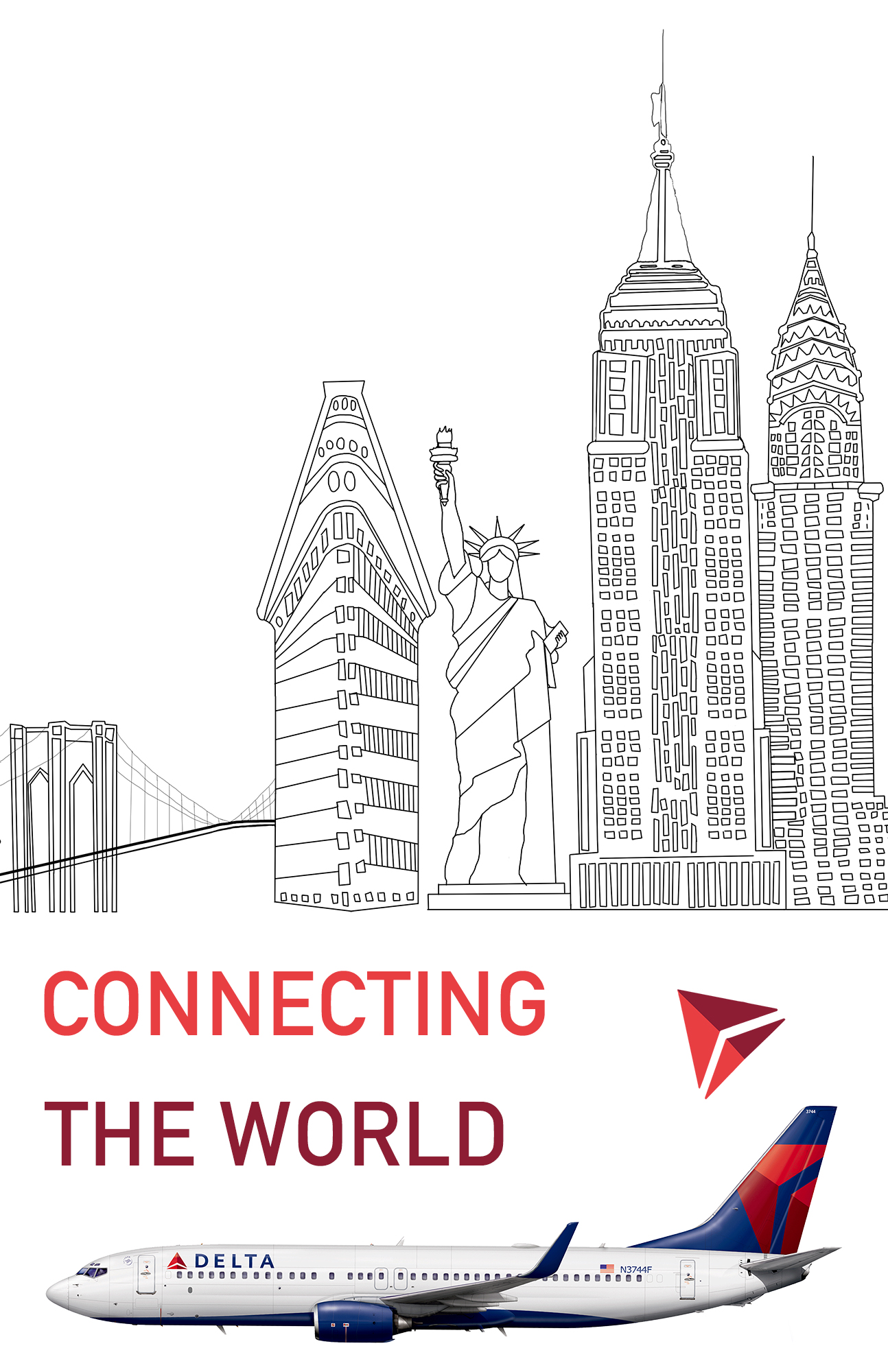 The goal of this advertisement is to allow people to feel like Delta Airline is a reliable company that is there for you to connect you to the world. Delta Airlines would allow singles/couples/and families to travel feeling prioritized. After seeing these advertisements, we hope customers will fly with Delta, in order to connect with any of the 326 destinations, 6 continents, all by using one airline.