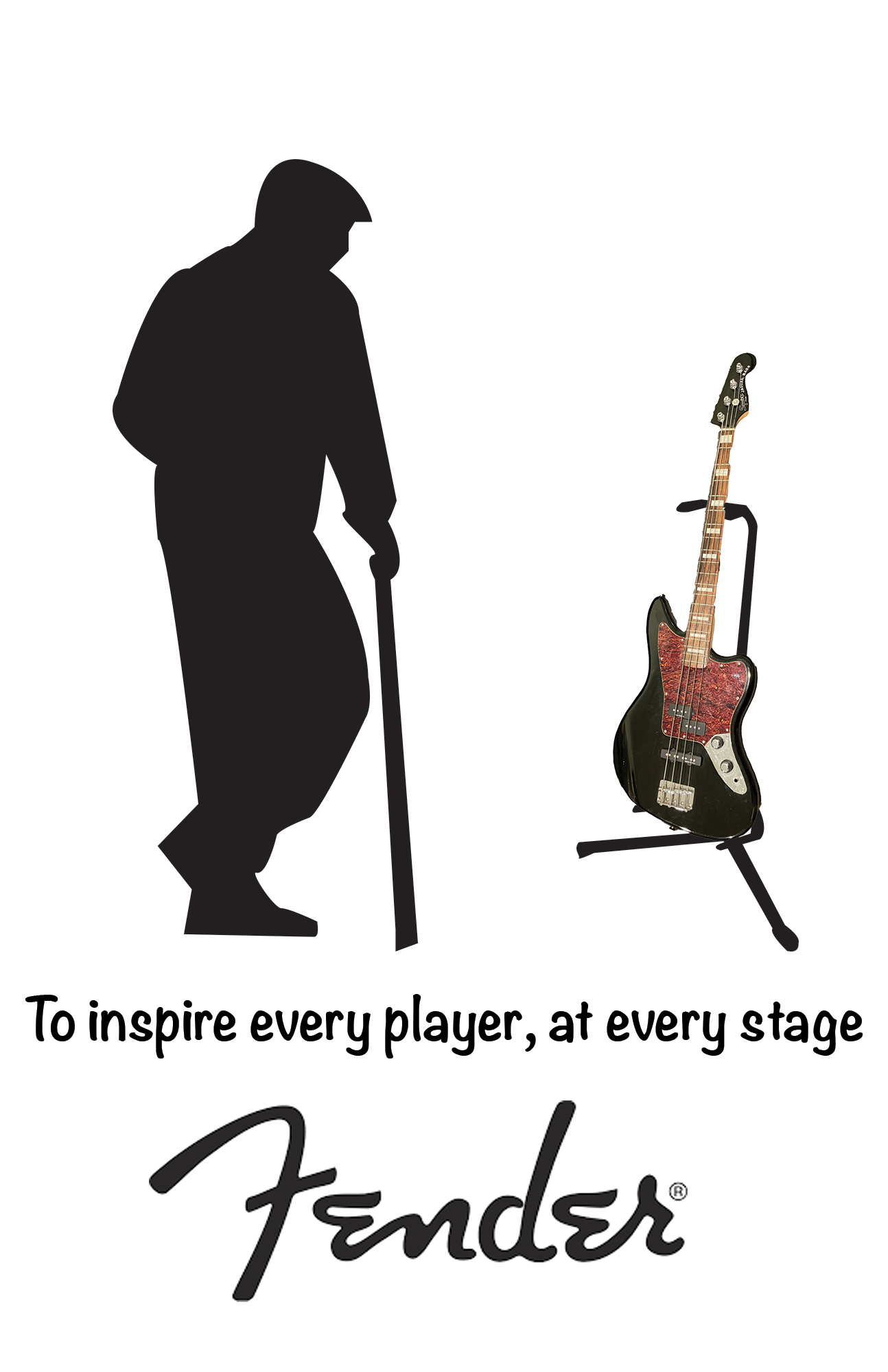 The company that I am designing a bus shelter ad for is Fender Guitars. Fender makes both acoustic and electric guitars as well as the necessary items to play them (amp, chords etc). They offer quality instruments at lower prices than many other places. They are quite popular among professional musicians.They also offer lessons and tutorials on the playing of guitar. It is headquartered in LA. It doesn't have to large of a range of products, as it is mostly centered around the playing of guitar. The main product of theirs that I'm advertising is their guitars/basses. The company and it's founder, Leo Fender, helped to pioneer the electric guitar, and it calls itself the “most trusted name in music”. They are considered one of the best guitars relative to price, and being an owner of one, I feel that it's a really nice bass.