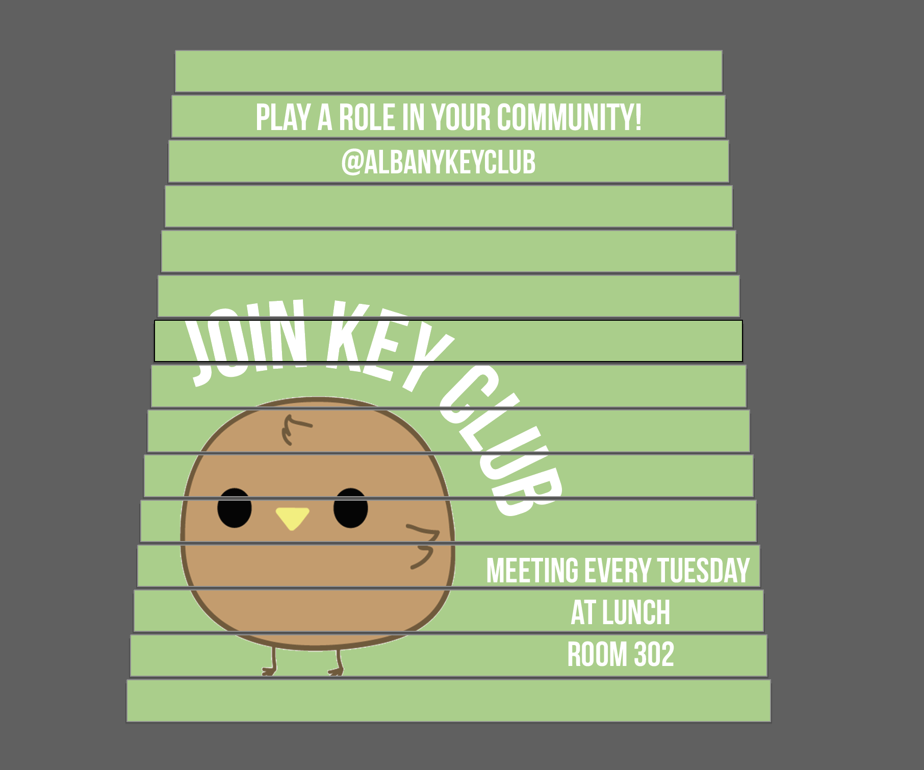 The goal of my design for the atrium stairs is pretty straight-forward: to tell people about the existence of key club and provide them with basic information about it.